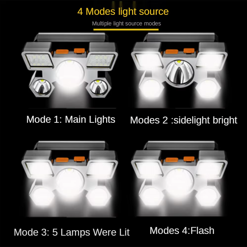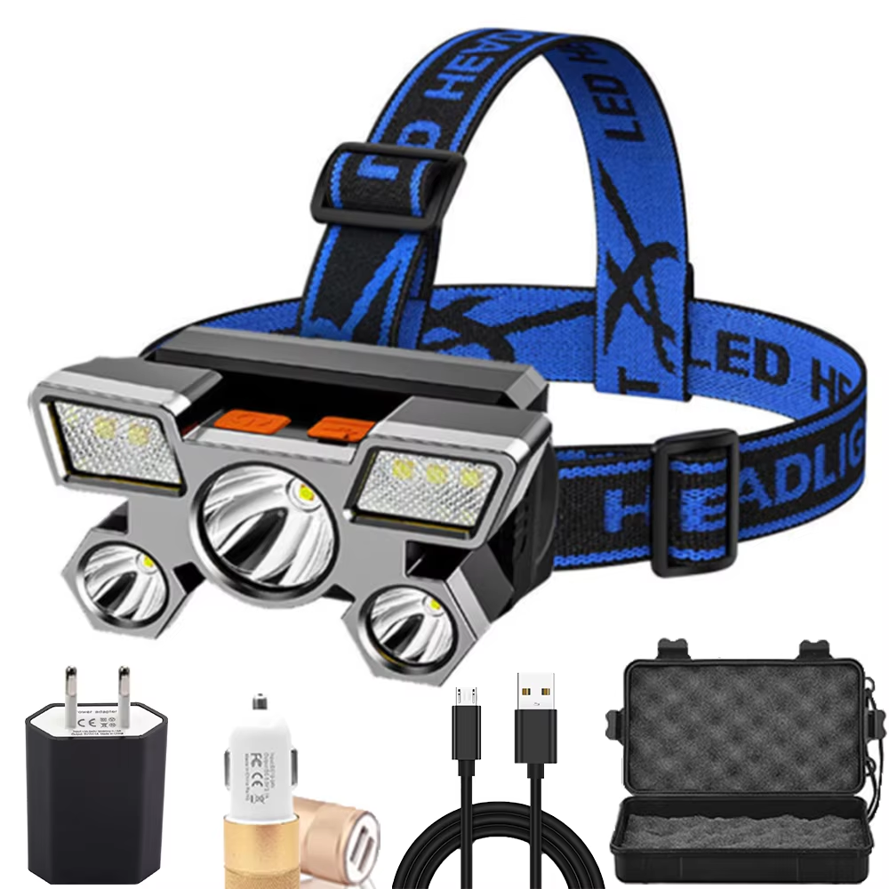 Outdoor Hunting Running Hiking 5 LED 500m Ip65 Waterproof 18650 Rechargeable Usb Led Head Torch Flashlight Headlights Headlamps